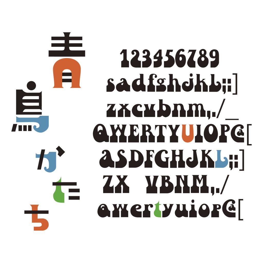 「青い鳥たち、カゴから」という不思議なタイトルのロゴを作りました。(内容は近未来の警鐘コメディだそうです)なんとなく無機質なお話なので手描きじゃない方がいいのかも、と思い、欧文フォントを分解して作ることに。Raindropというフォントがイメージに近かったのでこれを基本に